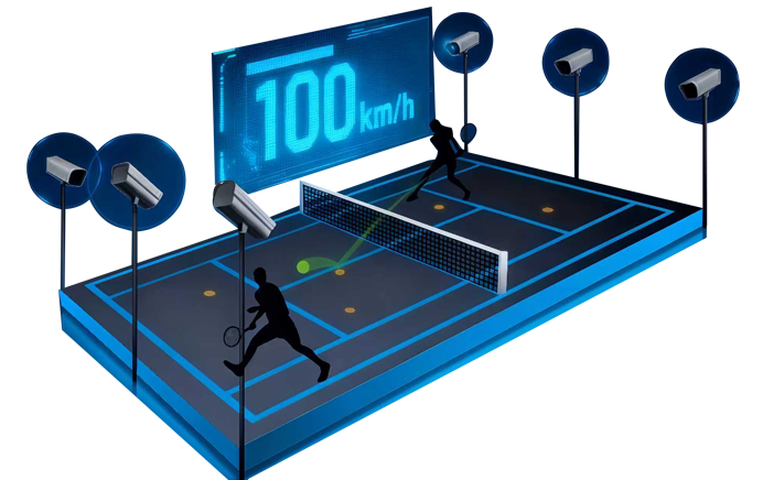 核心功能:实时测算发球速度、落点判定(IN/OUT)、鹰眼挑战、AI视频剪辑(精彩瞬间)、直播、比赛数据统计等。